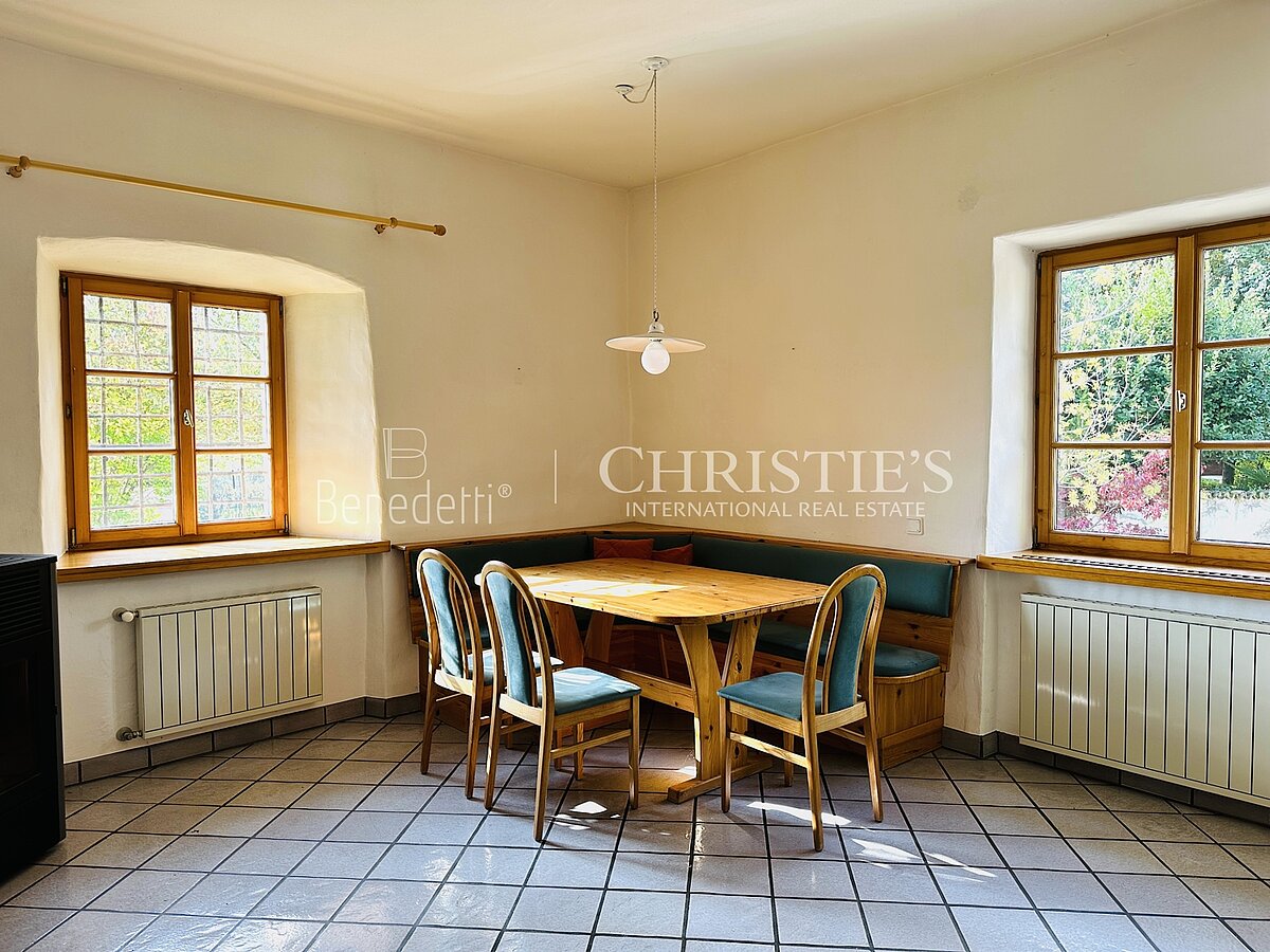 Zum Verkauf steht eine der insgesamt vier großzügigen Wohnungen dieses geschichtsträchtigen Ansitzes – eine besondere Gelegenheit für Liebhaber stilvollen Wohnens.