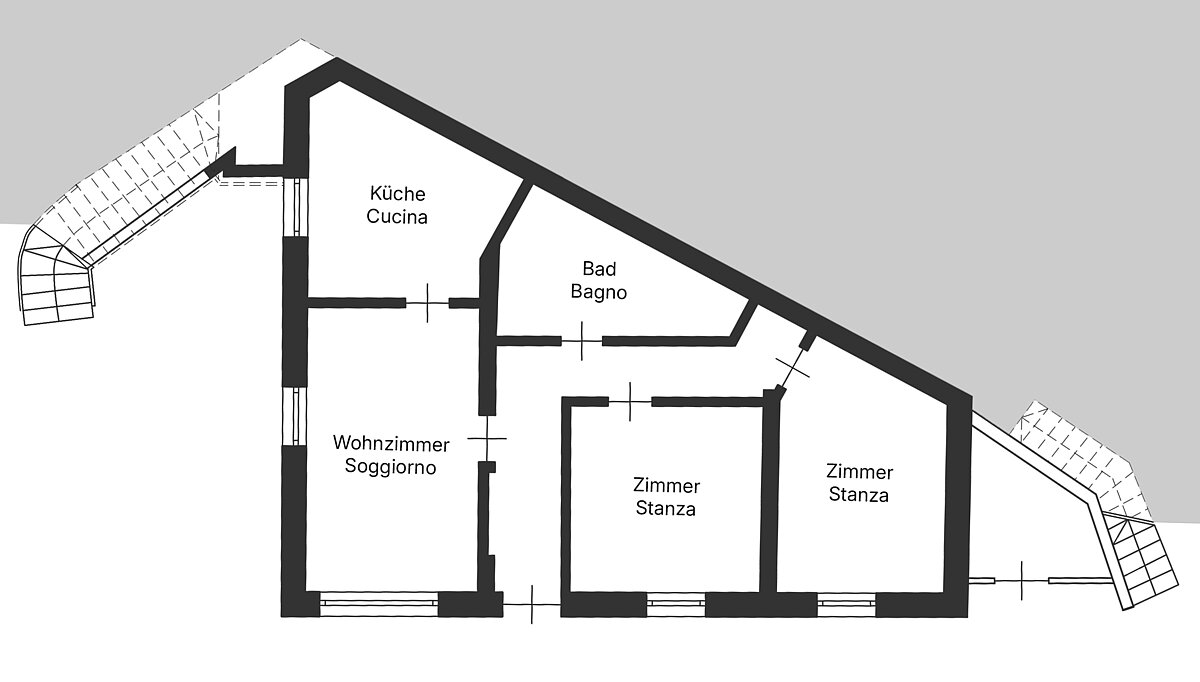 In Afers, auf 1.500 m Meereshöhe bieten wir dieses sanierungsbedürftige Mehrfamilienhaus zum Kauf an. Die Immobilie besteht aus drei Etagen, welche auf zwei separate Wohneinheiten aufgeteilt sind. Der Ort befindet sich entlang der Würzjochstraße und ist etwa 16 Kilometer vom Stadtzentrum Brixen entfernt. Damit ist Afers der ideale Ort für all jene, die Ruhe und Erholung suchen und gleichzeitig die Nähe zum Stadtleben schätzen. Sowohl die historische Stadt Brixen als auch das beliebte Ski- und Wandergebiet Plose sind in kurzer Zeit erreichbar und bieten vielfältige Möglichkeiten zur Freizeitgestaltung.