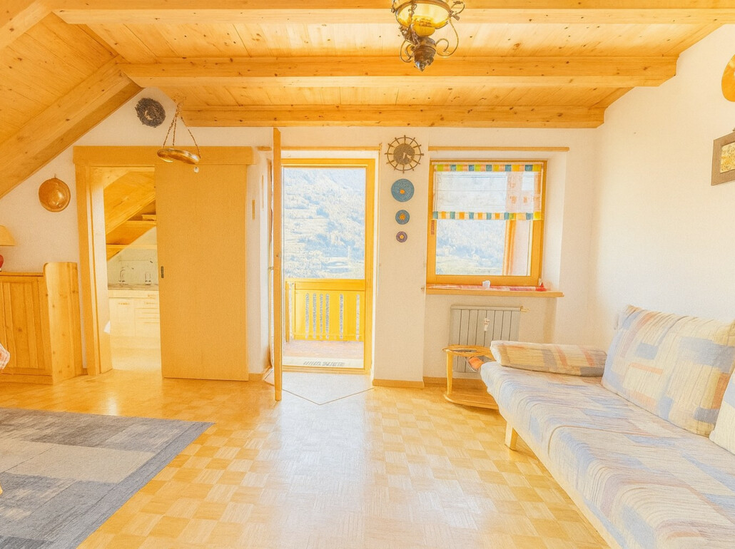 Zum Verkauf steht eine attraktive Zweizimmerwohnung im Dachgeschoss (2. Obergeschoss) eines gepflegten Wohnhauses in Pedratsches/Abtei.