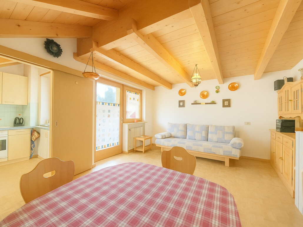 Die Wohnung überzeugt durch ihren gemütlichen Schnitt, eine sonnige Terrasse mit Blick auf den Heilig-Kreuzkofel und eine ruhige, zugleich zentrale Lage.
